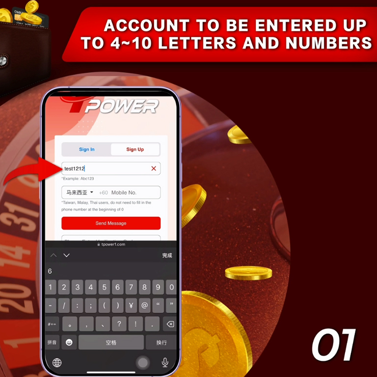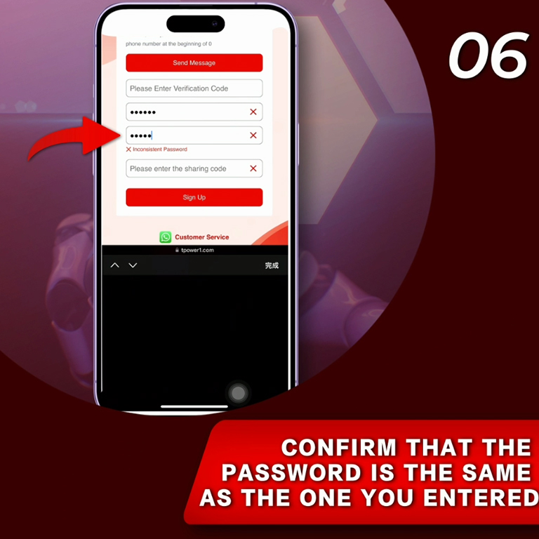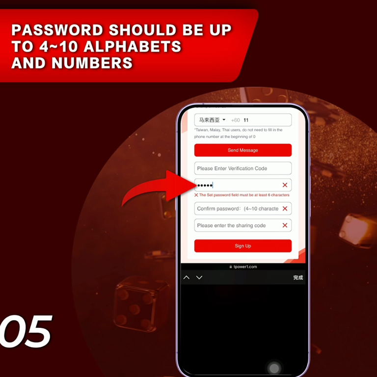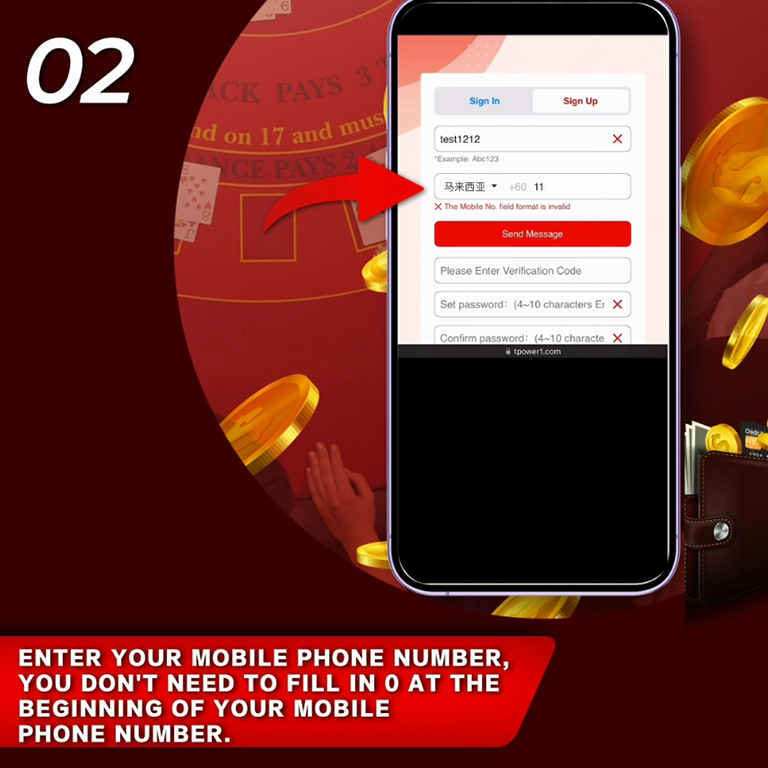 Masukkan nombor telefon anda dan pilih mengikut negara anda